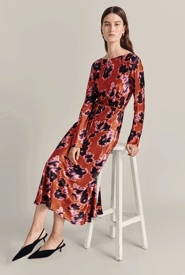 Sleek and simple, with an abstract floral print, our Christine Dress is a classic midaxi crafted from signature Satin. Long straight sleeves and an elegant neckline make this dress perfect for dressier occasions. From cocktail parties to weddings – this is a wardrobe staple.
