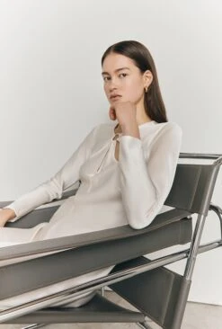 We love this simply yet stunning style crafted from our sustainable Eco Vero Satin in classic ivory. With long straight sleeves, Freya is a classically elegant midi dress with gorgeous cut-out detail just below the neckline. Wear yours with your favourite heels and a signature clutch bag.