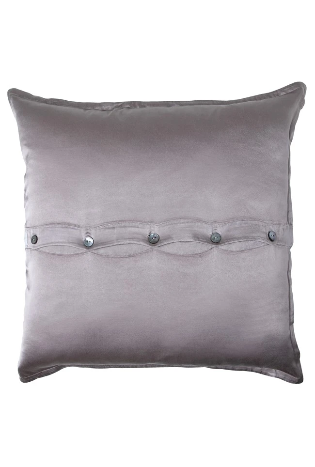 This oversized square cushion is in our signature heavy satin with a shell button fastening.