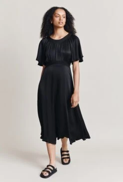 Make Sariyah your go-to party dress this season. A classic slip dress with adjustable straps, Sariyah is as elegant as they come. Crafted from luxuriously soft satin in classic black with a button-through front that gives way to a split, she skims the silhouette beautifully. Dress up with heels and a statement clutch.